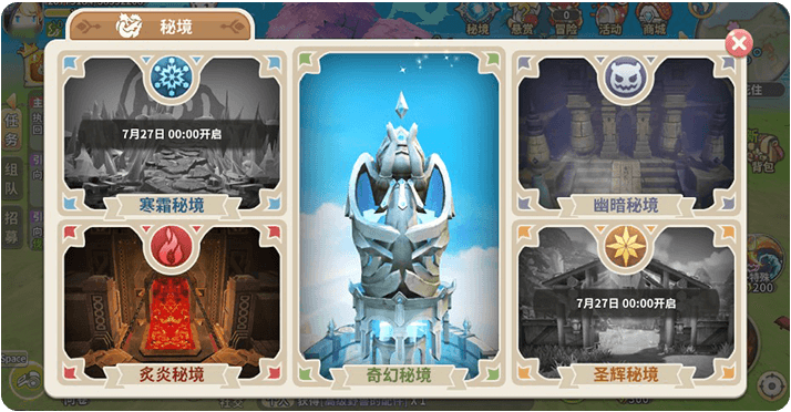 大秘境玩法 —— 一股强大的神秘力量笼罩在卢米娅城,每周都会出现形态各异的秘境空间,吸引着各位勇士前来探险!每周随机副本 + 词缀技能,全新的副本机制。秘境以史诗副本为基础,通过每周随机刷新副本以及词缀,创造出全新的副本体验。每个秘境目前共有15层,副本难度以60级史诗副本难度为基础,每周会将每层对应的副本随机替换,并刷新词缀技能,每次玩法及策略不甚相同,请注意职业搭配。